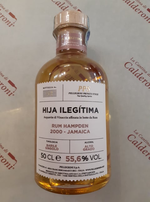 Acquavite di vinacce affinata in botti di rum Hampden proveniente dalla Jamaica.