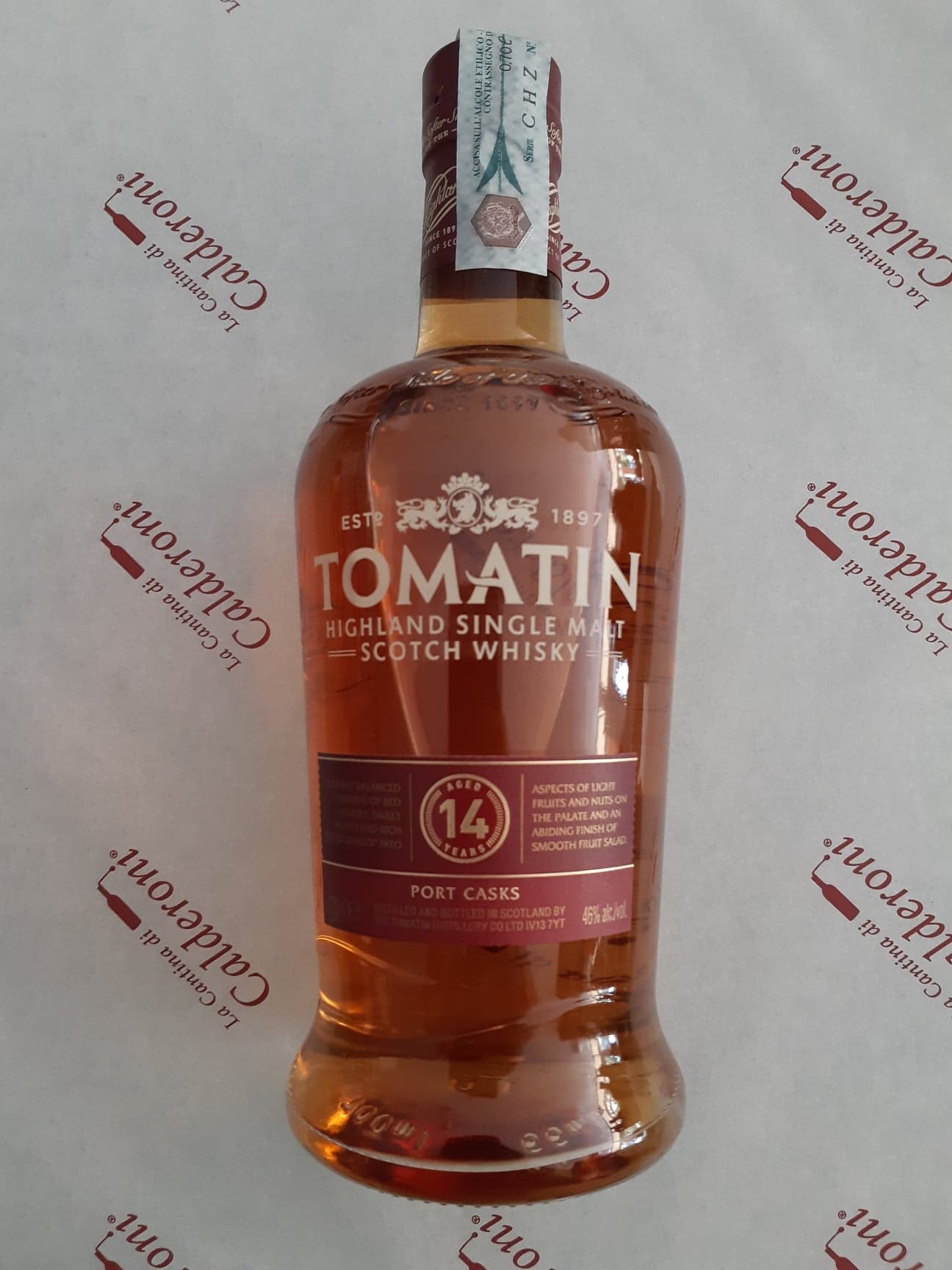 Whisky Tomatin 14 Anni รจ stato introdotto nel mercato, nel 2014. Single malt delle Highlands maturato in botti di Bourbon e botti di Porto appositamente selezionate, conferendo al whisky dolcezza simile al vino.